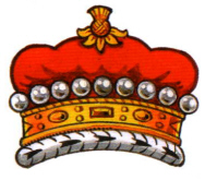 Coronet - A circle of silver gilt, surmounted by sixteen silver balls; a cap of crimson velvet, turned up ermine, thereon a golden tassel.