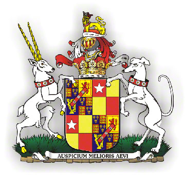Dexter: an Antelope Argent armed and unguled Or; Sinister: a Greyhound Argent, each gorged with a Collar as in the crest