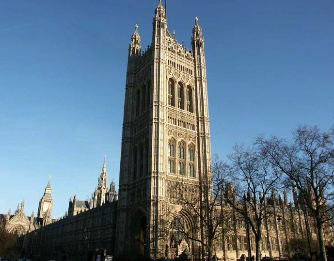 The Victoria Tower - it houses the records of Parliament and the Sovereign's entrance to the Palace of Westminster through the Norman Porch