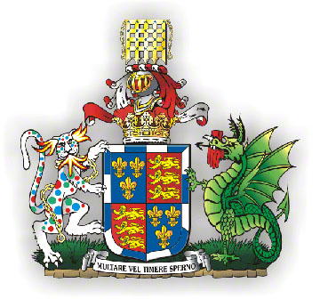 Quarterly, 1st and 4th, Azure three Fleurs-de-lis Or (France); 2nd and 3rd, Gules three Lions passant guardant in pale Or (England), all within a Bordure company Argent and Azure