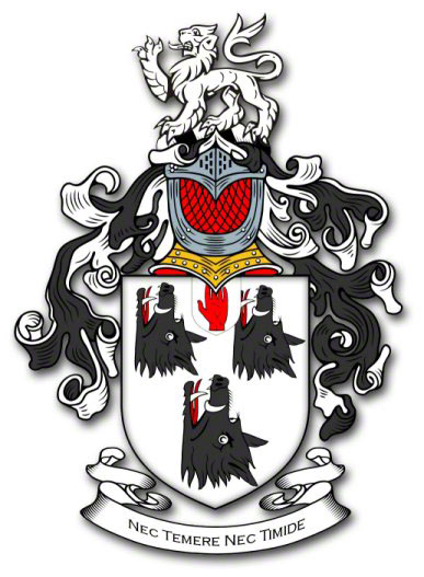 Argent three Boars' Heads erect and erased Sable langued Gules