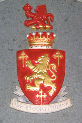 Note that the demi rampant lion in the crest should be Or and not Gules