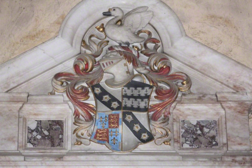 Arms of Cary, Viscount of Falkland - Memorial to Lucius [Cary], 2nd Viscount of Falkland, Great Tew Parish Church, Oxfordshire
