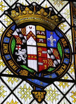 The shield is surrounded by the Garter and surmounted by an earl's coronet