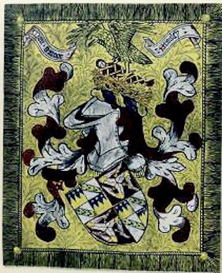 are the arms, with silver helm and red ermine-lined mantle, surmounted by the well