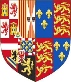 of her husband, King Philip II of Spain, with the Royal Arms.